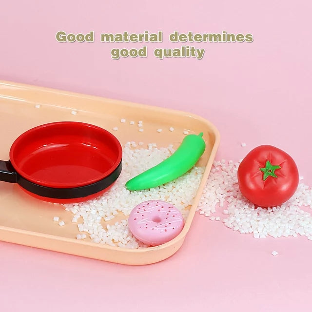 - With kitchen Play Toy with Cookware Playset Cooking Utensils and play food, kids can create their own kitchen and cook foods and share them with friends! Great way to enhance children's social skills.
