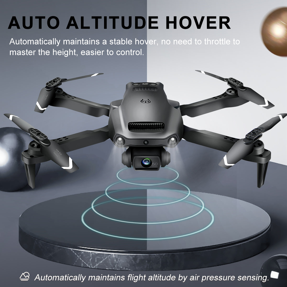 2.4G Remote Control and Wifi Image Transmission - The drone is controlled by 2.4G remote control with stable signal connection, which can realize the flight control within 80 meters. Users can connect the drone to their mobile devices via wifi, watch the drone's real-time footage on the app, and take photos and videos. You can also draw the flight path in the app and gravity sensing to control the drone's flight direction.