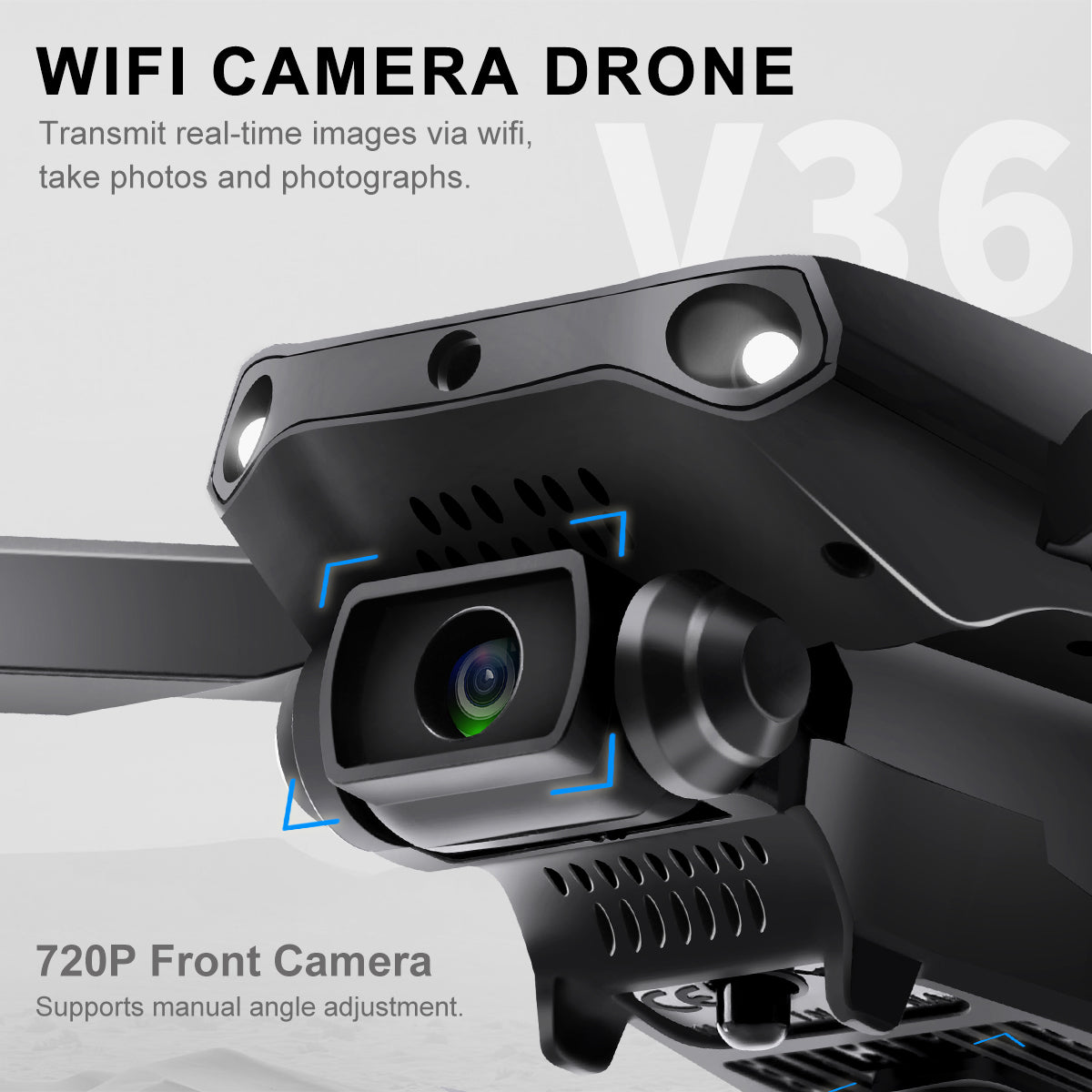 Camera Drone with Obstacle Avoidance - V36 drone is equipped with 720P camera, the front camera is 90° manually adjustable, allowing you to capture great images and videos from a wider perspective. Equipped with a three-direction obstacle avoidance detection design, realizing automatic obstacle avoidance in front, left and right sides, so that children can also easily control the flight.