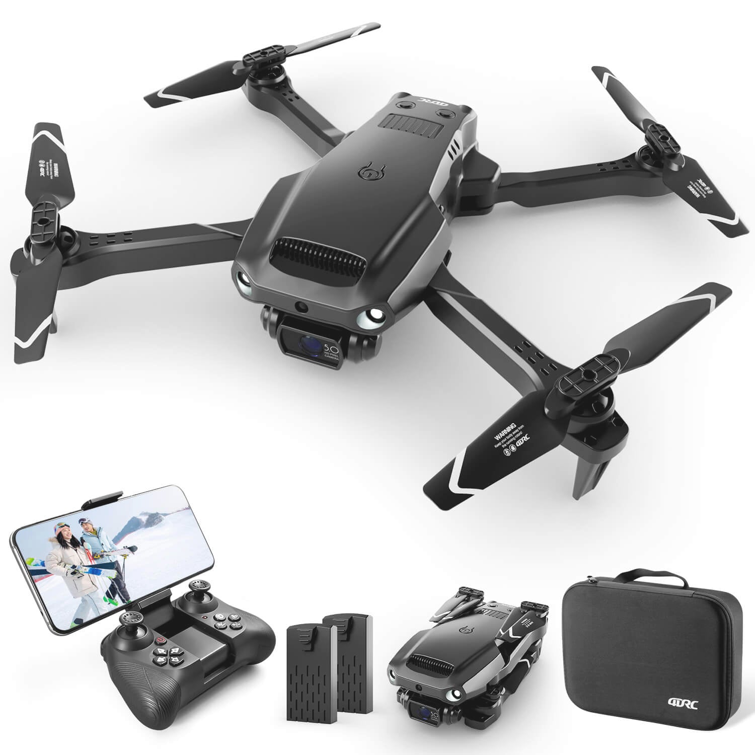 Equipped with 2 Modular Batteries - Provides up to 24 minutes of flight time. When the battery is low, the tail light of the drone will flash to remind you to recall the remote control drone. No need to worry about losing the drone. The emergency stop function immediately triggers the drone to stop and land. All these beginner-friendly features ensure safe drone flight.